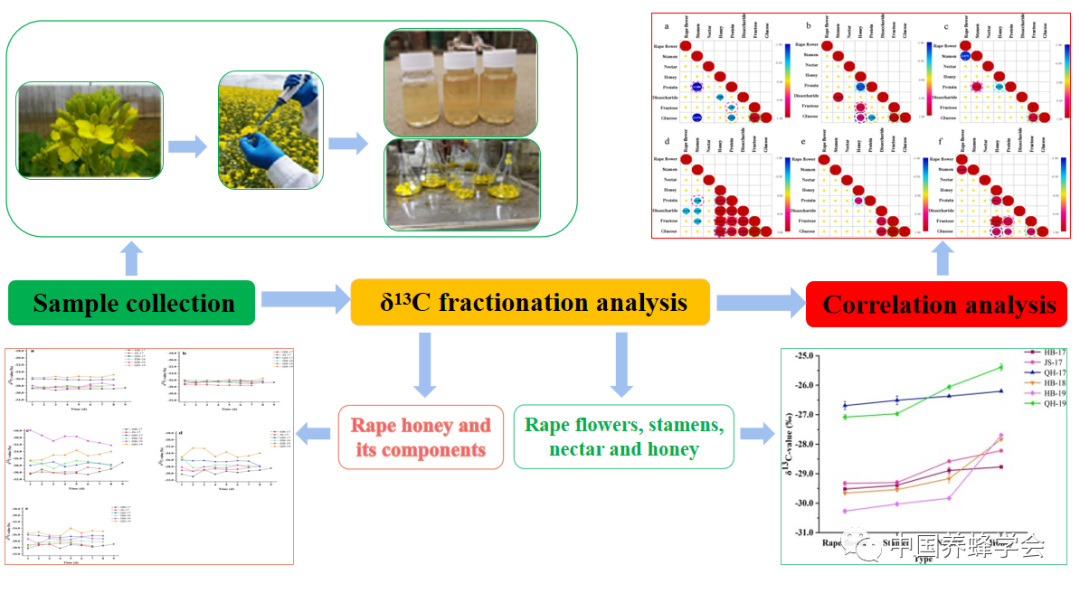 近日,中國農業科學院蜜蜂研究所資源昆蟲產品加工與功能評價團隊研究揭示了穩定碳同位素從油菜花到油菜蜜的分餾規律。相關研究成果發表在《食品化學(Food Chemistry)》上。同時,該研究《一種鑒別蜂蜜產地來源的方法與應用》獲得了國家發明專利。