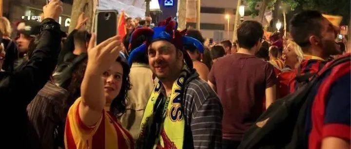 比如在巴薩羅那在街上遇到球迷剛看完一場(chǎng)球賽散場(chǎng),他們歡呼,唱歌,擁抱,放煙火狂歡,不是球迷也不得不被他們氣氛所感染。我甚至被一個(gè)小哥哥球迷突然擁抱說(shuō):thank you !然后他又突然走開去擁抱其他人,我當(dāng)時(shí)小臉紅撲撲,哈哈。